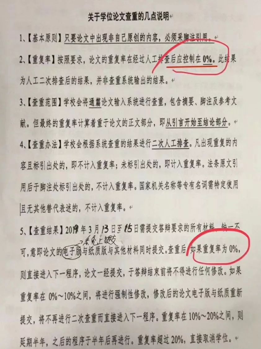 若論文重復率高于 20 % 的話,則直接取消學位。