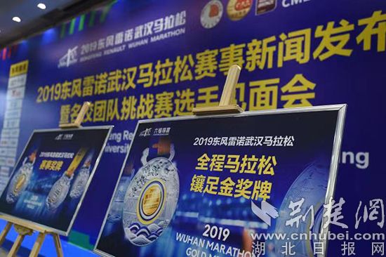 荊楚網客戶端—荊楚網消息(通訊員邱茹婷 陳子威 漢馬大學生記者何楚夢)2019年武漢馬拉松賽事新聞發布會暨名校團隊挑戰賽選手見面會于3月18日在光谷國際網球中心舉行,漢馬組委會發布了今年漢馬的參賽T恤、完賽獎牌以及選手專屬地鐵卡等信息。