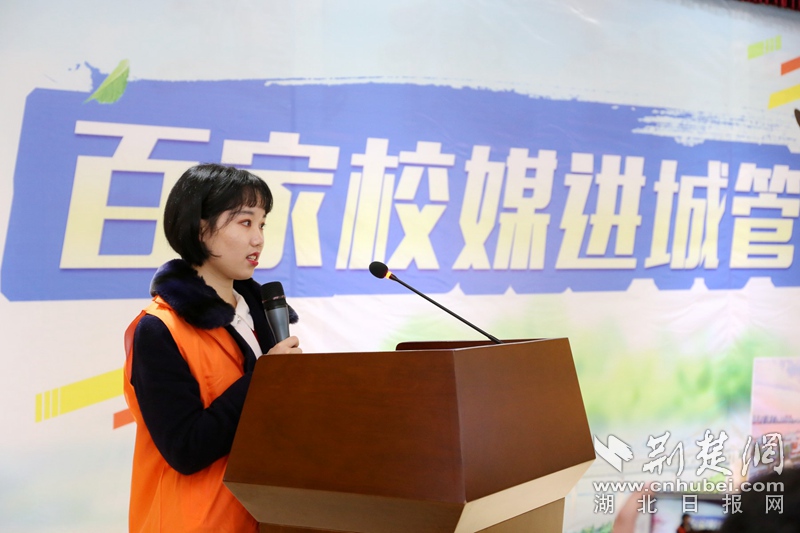 湖北日報大學生記者團成員、中南財經政法大學學通社記者楊李幸子代表大學生記者發言。記者鄭一鳴 攝
