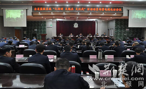 荊楚網客戶端—荊楚網消息(通訊員黃勇峰 楊民勝)為深入貫徹落實中央政法工作會議關于加強民警隊伍革命化、正規化、專業化、職業化建設的要求,進一步提升民警政治能力、業務能力、體能技能、警容風紀,確保新中國成立70周年和第七屆世界軍運會期間監獄安全穩定,湖北省監獄管理局黨委決定集中三個月時間,在全省監獄人民警察隊伍中開展"大培訓 大練兵 大比武"活動。3月27日上午,湖北省監獄管理局召開了全省監獄系統"大培訓 大練兵 大比武"活動動員部署電視電話會議。省監獄管理局黨委書記、局長郝愛民講話,省監獄管理局黨委委員、政治部主任張新華主持會議。