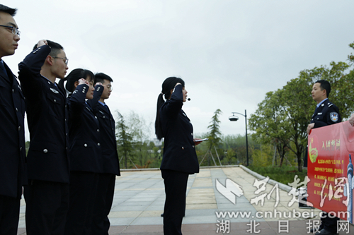齊唱國(guó)歌,重溫入團(tuán)誓詞,洪亮的歌聲和鏗鏘的誓言陣陣回蕩,傳遞出青年民警的堅(jiān)定決心。