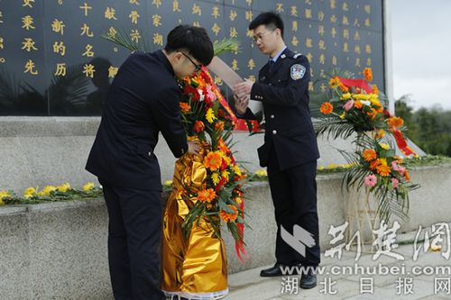 青年民警為革命先烈敬獻(xiàn)花藍(lán)。(通訊員 陳顯鋒 攝)