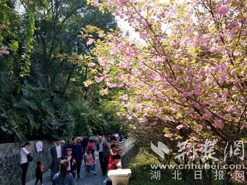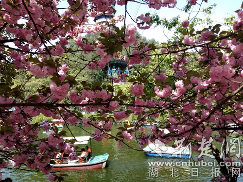 櫻花開滿游樂湖。(通訊員 張云朝 攝)