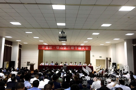 荊楚網(wǎng)客戶端—荊楚網(wǎng)消息(記者 呂鑒蕾)4月19日,黃石開發(fā)區(qū)·鐵山區(qū)召開三級(jí)干部大會(huì),這是開發(fā)區(qū)·鐵山區(qū)一體化發(fā)展實(shí)施后,召開的首次全體干部大會(huì)。