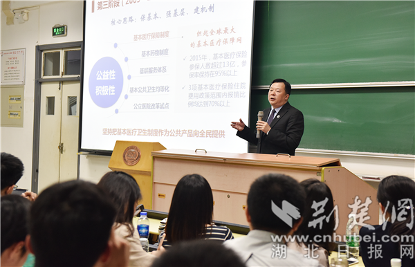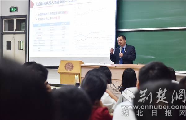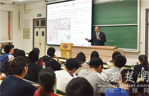 荊楚網客戶端—荊楚網消息:4月17日,華中科技大學品牌公選課《深度中國》再次開講。此期課程以“生命的守護——健康中國新時代”為主題,特別邀請華中科技大學附屬協和醫院第一臨床學院院長、全國政協委員胡豫做主題授課,同時該院心血管外科董念國主任、超聲影像科謝明星主任、放射科鄭傳勝主任三位大咖教授也走上講臺,圍繞“生命的守護”,講述了各自領域的技術創新與應用。