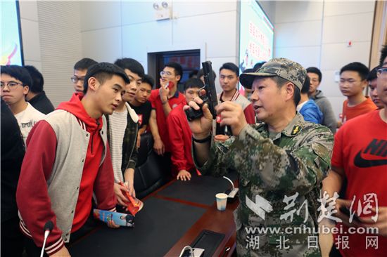 征兵宣傳工作人員為學生展示槍械。(通訊員 供圖)