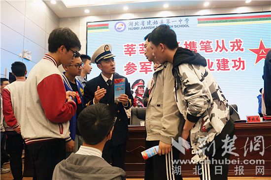 “我可以堅定地告訴大家,當兵,是我人生中最正確的一次選擇!我當年也曾在建始一中就讀……”在建始一中報告廳,該縣退役士兵代表謝鐸鼓勵同學們建功軍營,向大家發出了入伍倡議,讓在場學生們熱血澎湃。