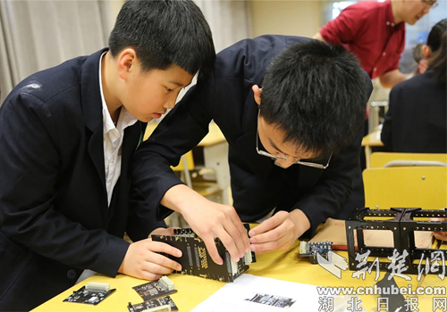 實(shí)驗(yàn)初中學(xué)生動(dòng)手組裝深空探測(cè)器。(通訊員 供圖)