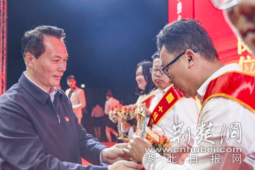 湖北省國資委宣傳處處長陳剛為勞動者頒獎。 (通訊員 曾成 攝)