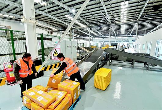 圖為:4月28日,武漢天河機場國際快件監管中心正式啟用,海關9610監管模式正式在武漢天河機場落戶并開辦業務。(湖北日報全媒記者倪娜通訊員李軍攝)