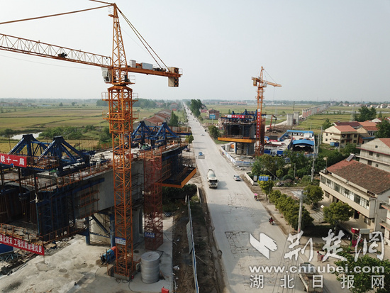 安九高鐵湖北段2標開始架設全線首片梁 通訊員肖帆攝