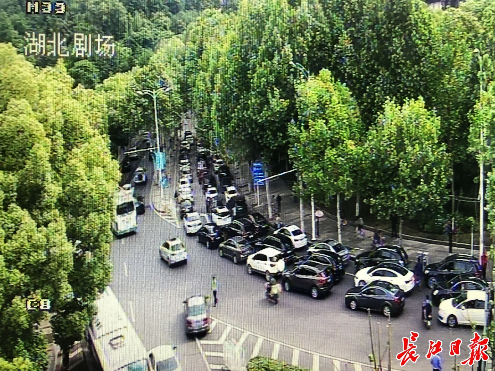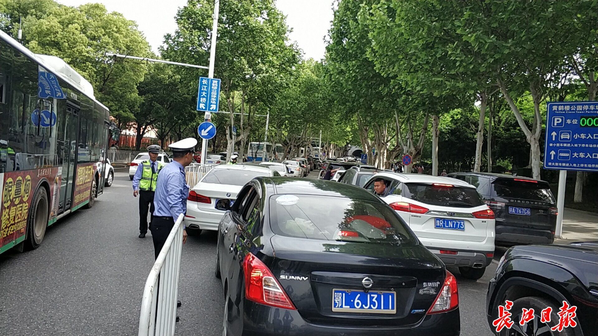 武昌路黃鶴樓停車場已達到飽和,武昌交警正在現場疏導