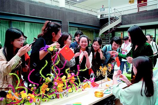 圖為:高職師生在楚天傳媒大廈現場展示才藝。(視界網 黃培 攝)