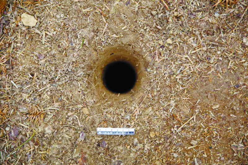 3月13日清晨,護墓員曾慶松和同伴開始在各自分管的區域巡查。上午9時許,曾慶松巡查到火燒冢副冢時,發現一處地面覆蓋的松毛似乎被人動過手腳,比前一天稍顯蓬松。他扒開松毛,眼前出現一個拳頭大小口徑的盜洞。