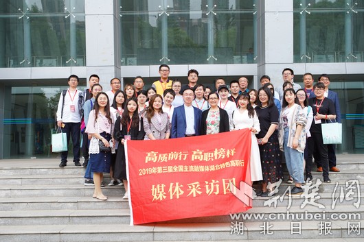 5月9日下午,2019全國主流融媒體湖北特色高職行采風團走進湖北科技職業學院。來自中國網、中國教育報、中國青年網、國際在線等中央媒體的教育記者朋友們以及華龍網、四川新聞網、中安在線、大眾網、龍虎網等近40家新聞媒體直擊學校特色辦學。漫步在校園,來自新興產業的科技氣息撲面而來。