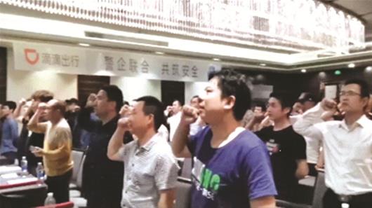 圖為:滴滴聯(lián)合武漢交管局進行線下網(wǎng)約車司機安全培訓。