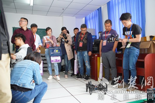 在該學(xué)院的電子信息實(shí)訓(xùn)基地,為記者們展示蜘蛛機(jī)器人的是交通信息學(xué)院移動通信技術(shù)專業(yè)的學(xué)生嚴(yán)洪飛,這個機(jī)器人就是他們團(tuán)隊(duì)為“互聯(lián)網(wǎng)+”大學(xué)生創(chuàng)新創(chuàng)業(yè)大賽準(zhǔn)備的。他負(fù)責(zé)項(xiàng)目的后期工作,在工作中他除了學(xué)習(xí)到知識和技能,更收獲了“團(tuán)隊(duì)精神”。他說:“沒有大家的通力合作,我們不可能完成這么復(fù)雜的項(xiàng)目”。