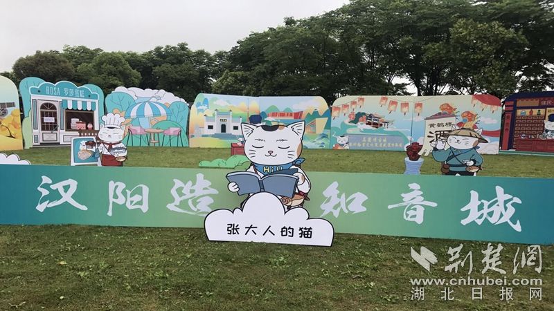此外,活動(dòng)現(xiàn)場(chǎng)6塊巨大的立板吸引了不少觀眾合影留戀。這6塊立板是漢陽(yáng)區(qū)以“張大人的貓”為核心IP形象,結(jié)合古琴臺(tái)、張之洞與武漢博物館、晴川閣等漢陽(yáng)旅游景點(diǎn),聯(lián)手健民·葉開(kāi)泰、黃鶴樓酒、羅莎蛋糕等區(qū)里的實(shí)力企業(yè)進(jìn)行的“知音文創(chuàng)場(chǎng)景展”。在該展區(qū)內(nèi),漢陽(yáng)企業(yè)為各自的美食、文化產(chǎn)品印上“張大人的貓”的形象,以文創(chuàng)的方式為漢陽(yáng)的產(chǎn)業(yè)賦能,助力漢陽(yáng)造品牌蓬勃發(fā)展。