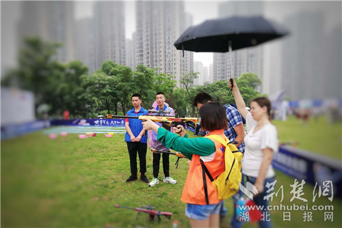 武漢工程大學徐娟現場體驗趣味軍運會項目