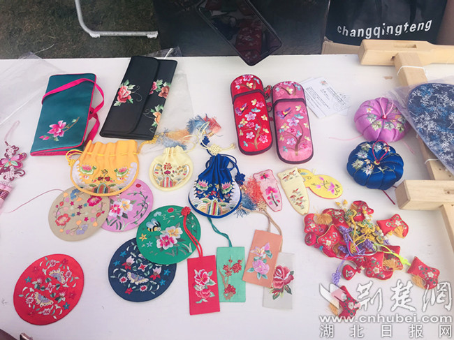 漢繡傳承人王燕女士為觀眾介紹了繡有小雞圖樣的牙簽包:"雞通吉祥,狀為花瓶,象征平平安安。選花型、勾勒、配線等,完成這樣一個看似小巧的作品就需要10多道工序。"她對記者感慨道:"在這個飛速發展的時代,我們做的不僅僅是傳承,更有發展創新。希望此次能通過軍運會的舞臺讓漢繡這張武漢名片名揚世界。"