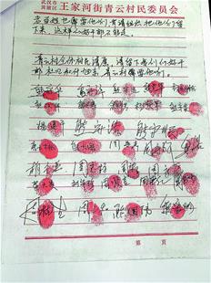 村民周志生、熊漢華想了個主意,大家一起寫封請愿書,遞交給扶貧主管部門。一切全憑自愿,沒人組織。“沒想到,我們走到一個灣子,村民就自動圍攏來,簽字摁手印。”周志生說,還沒走完5個村灣,紅紅的手印已經按了三頁紙。