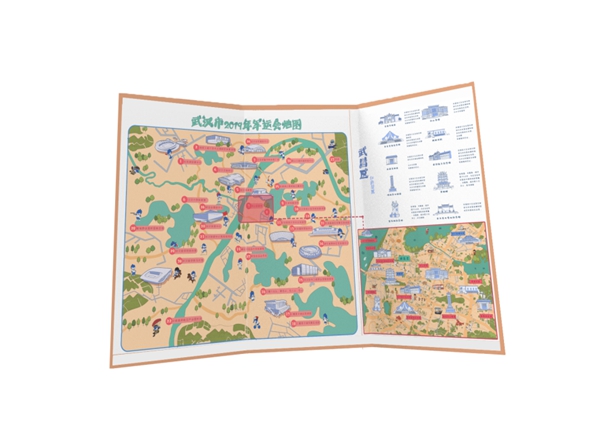 用地圖的表現形式,來加強軍運會、兵兵與武漢三者之間的聯系,通過細節彩蛋來展現武漢特色.兵兵在地圖里以一個帶領者的身份,在每個場館所在區域展現不同的可愛形象,不僅點出了場館特點,還增添了趣味感.地圖本身具有功能性,加上能夠成為貼圖的兵兵,更是可以應用到各種場景里.點燃參與者的熱情,營造軍運會活躍的氛圍。