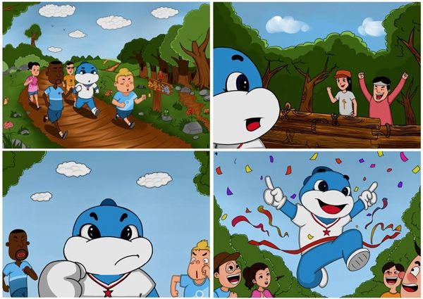 中華鱘返江溯流博擊,和各種不同皮膚種族的人們一起努力比賽。展現出中華鱘不怕困難頑強拼搏的精神。