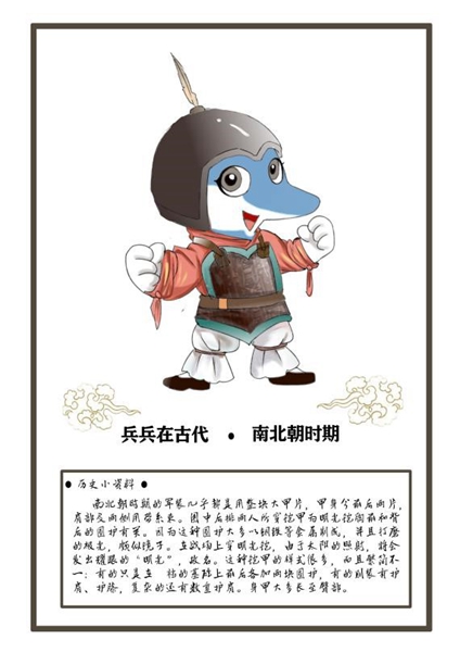 通過兵兵展示幾個比較具有鮮明特點古代軍事服飾的演變過程,從而將兵兵與傳統文化相結合。既能體現中華五千年歷史的源遠流長,又能在創新開拓,弘揚中國傳統 。