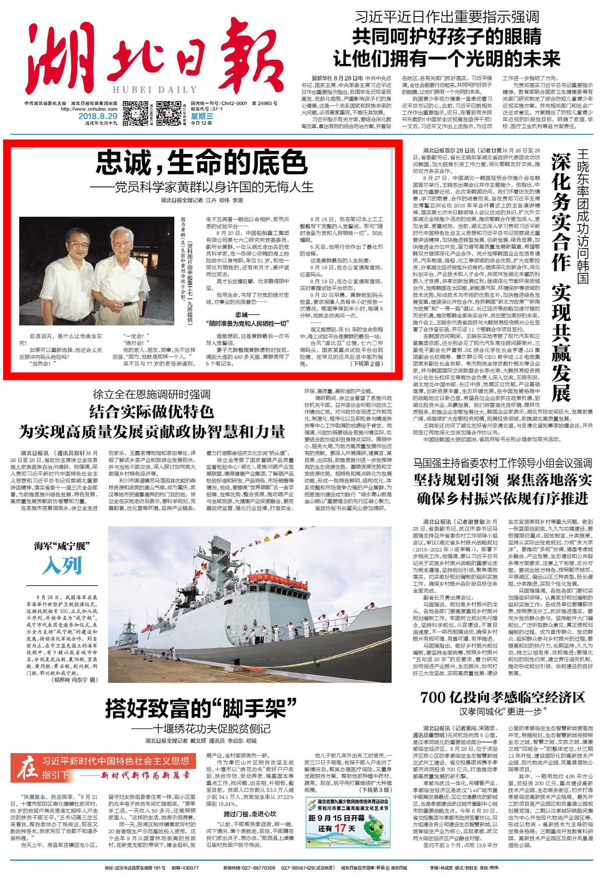描繪時(shí)代精神圖譜。堅(jiān)持每月刊登一期整版“荊楚楷模”先進(jìn)事跡,先后推出“走進(jìn)‘大國(guó)重器’總設(shè)計(jì)師”“楚天兵星”“讓人才在基層閃光”“為了民族復(fù)興 英雄烈士譜”“戰(zhàn)斗英雄講戰(zhàn)斗故事”等10多個(gè)專(zhuān)欄專(zhuān)版,生動(dòng)講述湖北各行各業(yè)的典型人物故事,推動(dòng)社會(huì)主義核心價(jià)值觀成風(fēng)化人。用忠誠(chéng)書(shū)寫(xiě)生命的底色的黨員科學(xué)家黃群、讓?xiě)?zhàn)艦澎湃“中國(guó)心”的海軍工程大學(xué)教授肖飛、放棄高薪回鄉(xiāng)種草莓的窩棚創(chuàng)業(yè)者馬偉等一批重大典型人物報(bào)道在社會(huì)上引起強(qiáng)烈反響。