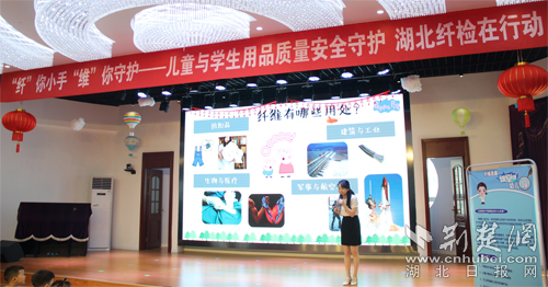 周開心:幼兒園用纖維制品質(zhì)量安全關(guān)系著每一個孩子的健康成長,為了堅持習總書記以人民為中心的發(fā)展思想,落實省政府在2019年工作報告中“放心消費在湖北”行動的工作部署,我們根據(jù)湖北省市場監(jiān)管局《2019 年兒童和學生用品安全守護行動工作方案》要求,在省質(zhì)強辦指導下、省市場監(jiān)管局質(zhì)量處和監(jiān)督處的支持下,聯(lián)合武漢市教育局開展了此次“幼兒園用纖維制品質(zhì)量安全守護行動”,主要聚焦幼兒園用纖維制品質(zhì)量狀況,督促企業(yè)履行質(zhì)量主體責任,普及纖維質(zhì)量常識,切實守護兒童和學生用品質(zhì)量安全,讓青少年兒童穿得稱心、用得舒心、玩得開心。