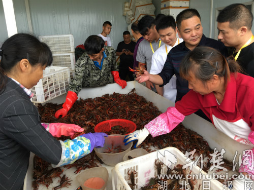 產(chǎn)自松滋的小龍蝦正在被分揀,運往全國各地的餐廳。