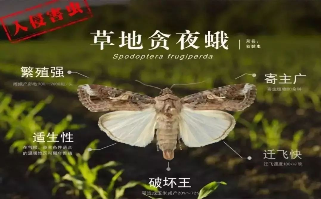 草地貪夜蛾是一種晝伏夜出、雜食性害蟲,俗稱“幺蛾子”,具有寄主廣泛性、繁殖倍數高、遷飛能力強、高齡暴食性等特點。通過取食玉米、高粱、水稻等80多種作物,可使作物減產20%至30%,嚴重時可以造成絕收。