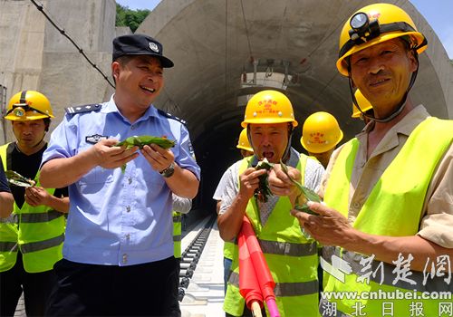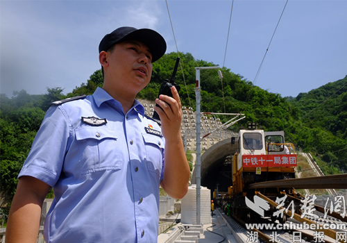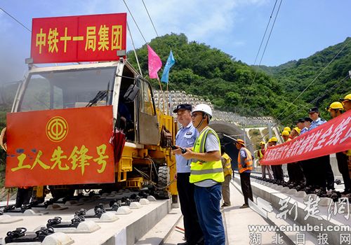 在隧道和線路上,中鐵十一局建筑工人們正頂著高溫,有條不紊地進行著鋪軌的最后工作。
