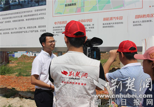 在生態智慧新城建設現場,各媒體記者認真聆聽了關于項目的建設規劃。該項目由湖北省交通投資集團有限公司和孝感市組建合資公司進行合作開發,項目總用地面積約13.9平方公里,總投資約700億元。得知項目一期建設就將投資200億元時,記者們連連稱嘆孝感建設發展的大手筆。