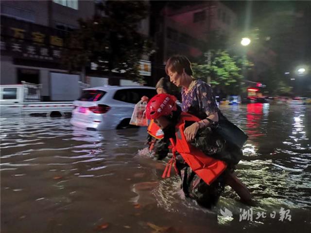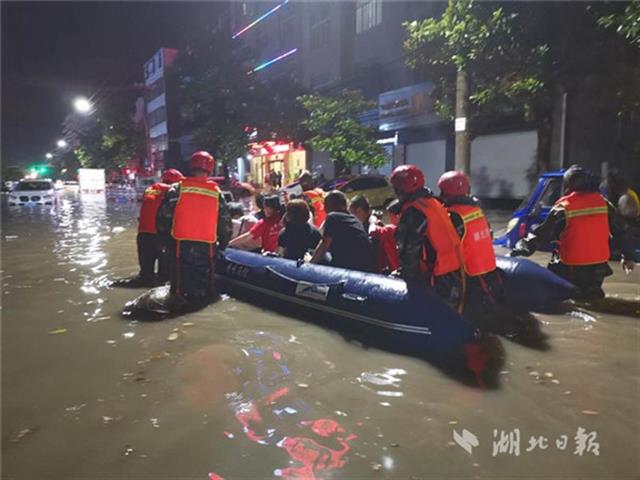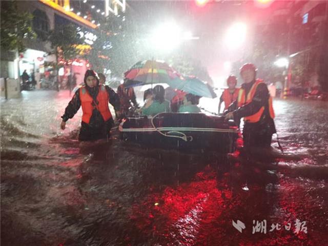 6月5日,黃岡麻城市主城區發生嚴重內澇,百余名學生、家長被困,接到報警后,消防部門立即調派2輛消防車10名指戰員趕赴現場進行處置。