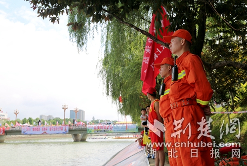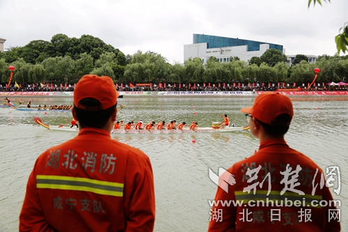 荊楚網客戶端—荊楚網消息(通訊員 劉麗娜)6月6日上午,湖北省咸寧市2019年龍舟公開賽在咸寧淦河舉行,來自全市各縣、市(區)共33支龍舟隊伍參加比賽,消防支隊全市動員、全警出動,圓滿完成了端午節大型龍舟公開賽消防安保任務。