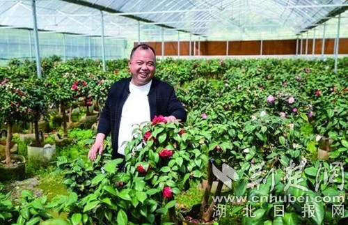 劉訓志決定發展花卉苗圃產業。坳上村地處幕阜山東脈,這里古老的茶樹,長年盛開茶花,山上各種各樣的林木花草,四季常新,郁郁蔥蔥。他和村“兩委”一班人,引能人,學技術,土法上馬,土洋結合,將高山上的茶樹移植到丘陵和平地,種植茶花,還有其他各種苗木花卉,建起了600畝園林花卉基地,吸收村里的貧困戶入股分紅。他創辦的“茶花嫁接產業基地”成為全省科技示范基地,吸引了湖北省農科院、華中農業大學等單位的大批專家學者前來學習指導。