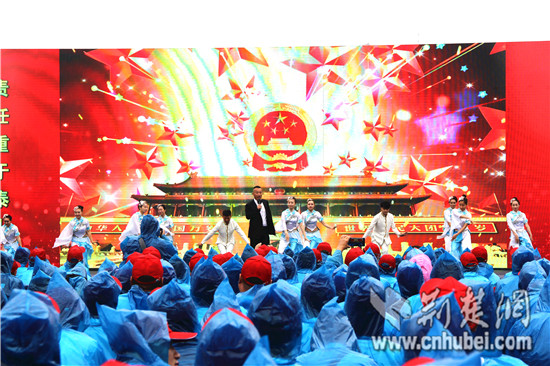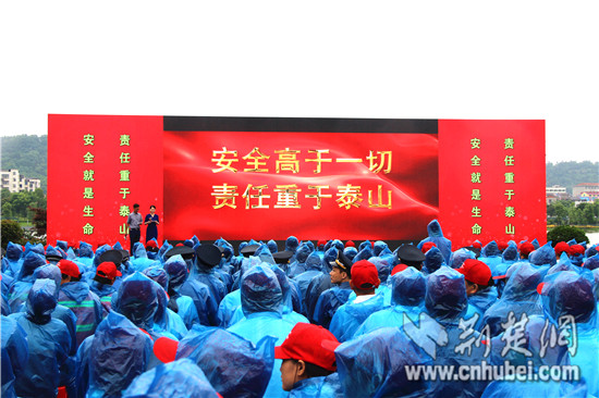 石首市常務副市長陳良帶領參加啟動儀式的人員進行安全生產宣誓。記者張城攝
