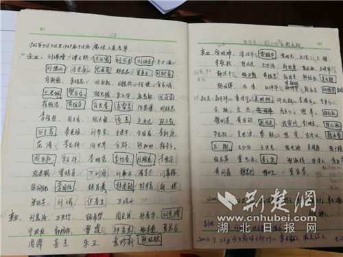 祝潔隨身攜帶的3本老干部工作記錄內容。 記者譚明猛 攝