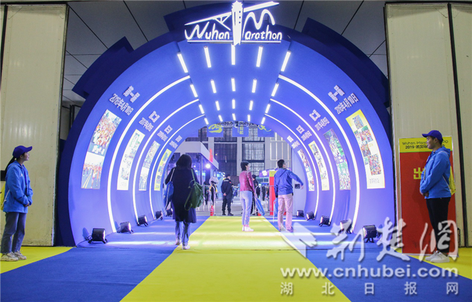 4月11日,2019武漢馬拉松博覽會在武漢客廳開幕。11日、12日、13日,志愿者們在此為漢馬選手們發放參賽物品。博覽會期間,A、B兩個展館中間的“時空隧道”內,掛滿了漢馬走過三年的精彩瞬間,讓2.4萬名選手提前感受漢馬的熱度和魅力。