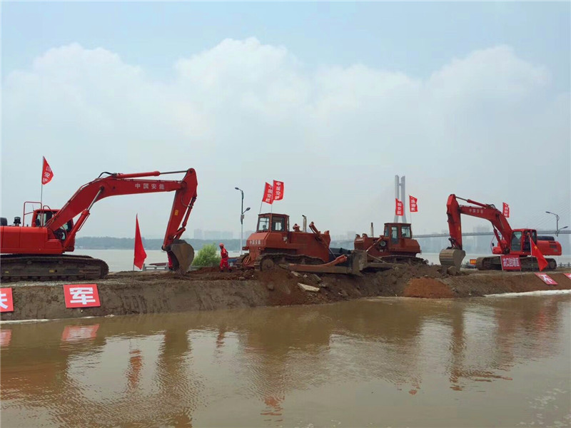 中國安能集團第三工程局第七分公司正在進行封堵決口。(記者 萬詩思、胡小軍攝)