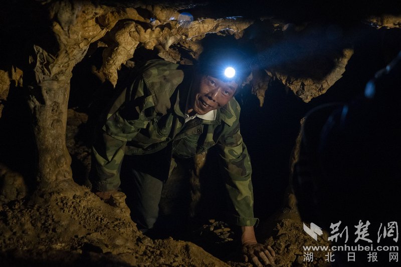 正在溶洞里作業的陳顯兵。記者 劉建維 攝