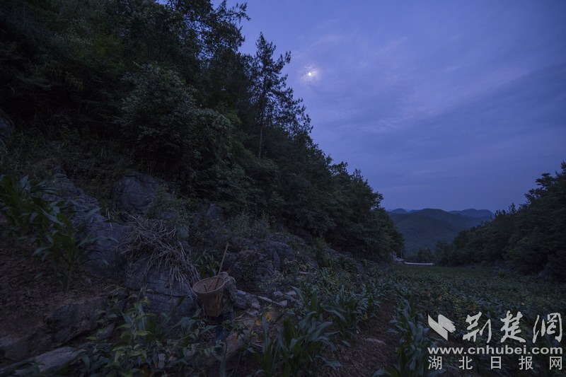 晚上8點左右,天色漸暗,月掛半空,在“景區”勞作一天的陳顯兵披星戴月而歸。記者 劉建維 攝