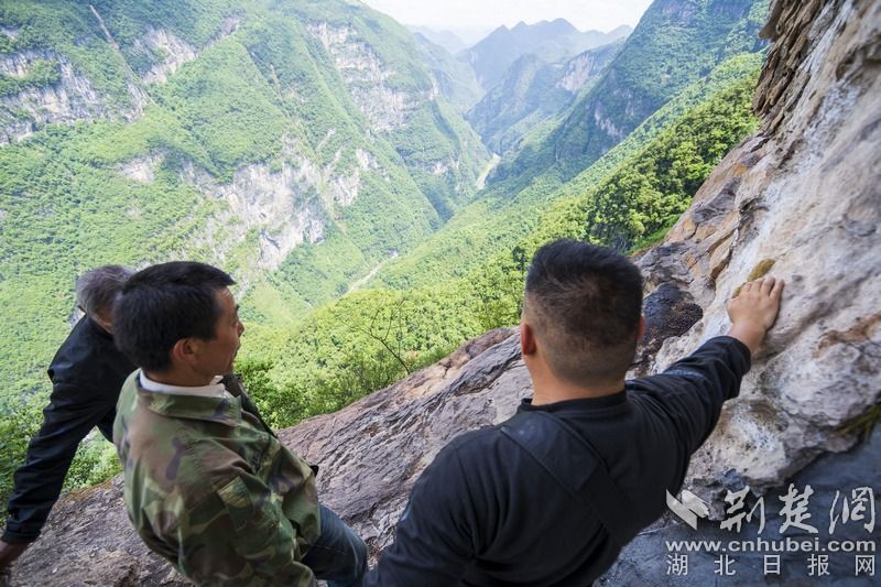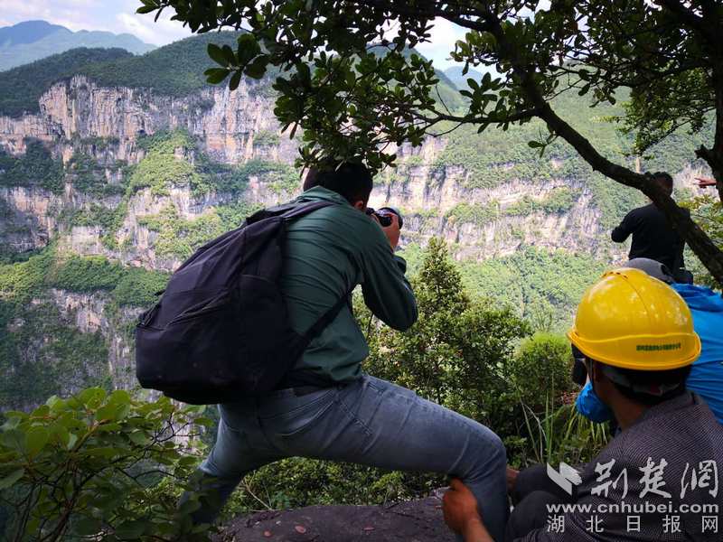 正在天心眼崖頂實地采訪的荊楚網記者。記者 劉建維 攝