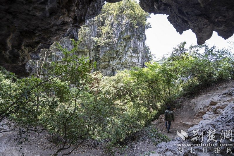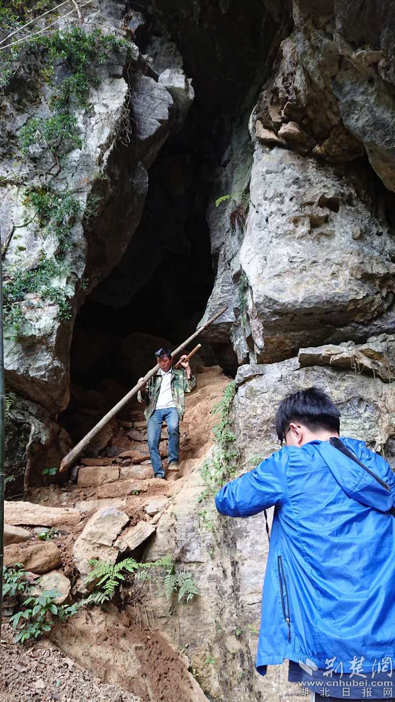 當地村民稱荊楚網“絕壁愚公”報道推出后,不少游客慕名前來。“這幾天很多人來參觀,最多的時候一天來了五撥人。”一位尚家村的村民說。圖為:陳顯兵正在帶游客參觀“景區”。記者 劉建維 攝