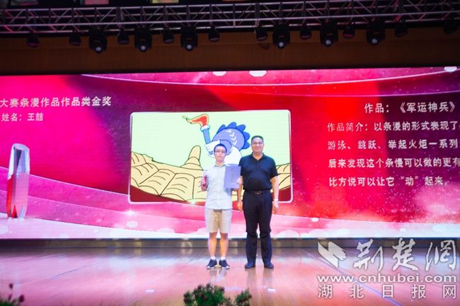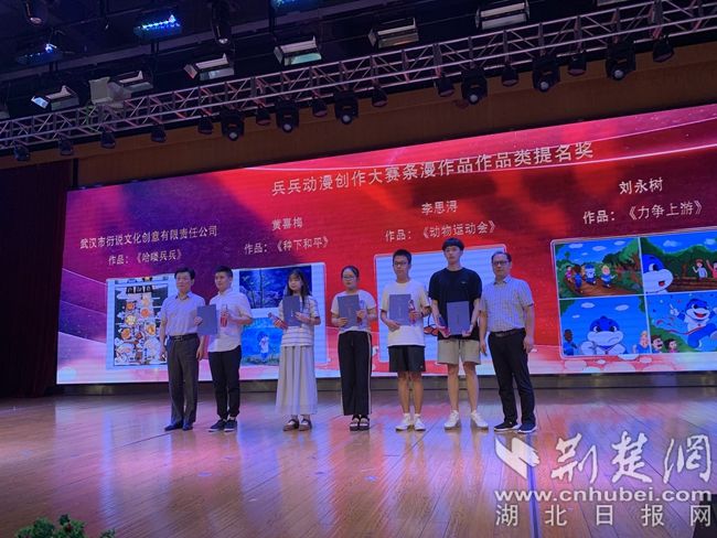 荊楚網客戶端—荊楚網消息(記者 郝菁 陳泉 通訊員 柴琦)6月23日,第七屆世界軍人運動會“兵兵動漫創作大賽”頒獎活動在武漢商學院舉行,來自全國的獲獎者們在這里和兵兵“團聚”,當他們的作品在活動現場進行展示時,也震撼了現場的觀眾。