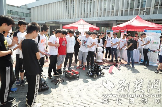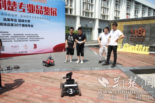 在武漢交通職業學院專業展區,大家紛紛圍觀該校船舶工程技術、物流管理、應用電子技術專業展示,可愛的“機器人”展區吸引大量小粉絲駐足觀看。