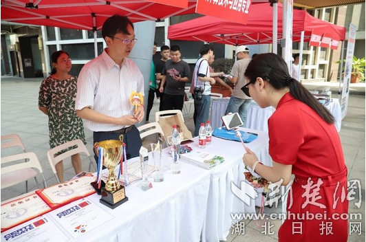 此次參展,湖北科技職業學院帶來了大量的獎杯證書,吸引了學生的目光。