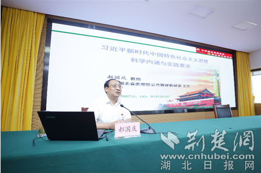 郝國慶教授以《習近平新時代中國特色社會主義思想科學內涵與實踐要求》為題,從背景意義、基本內容、突出特點、實踐要求等四個方面對習近平新時代中國特色社會主義思想的科學內涵與實踐要求進行了全面深入的闡釋,輔導授課具有很強的政治性、系統性、理論性、指導性。