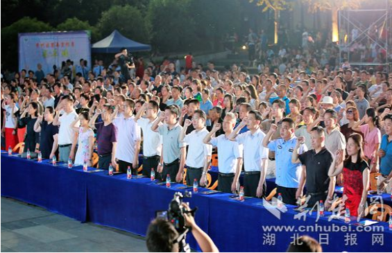 荊楚網(wǎng)客戶端—荊楚網(wǎng)消息(記者胡小軍 通訊員鄒建勛、張青)6月23日晚,“禁毒藍天下,幸福千萬家”專題文藝晚會在黃岡市黃州區(qū)遺愛湖東坡文化廣場舉行。